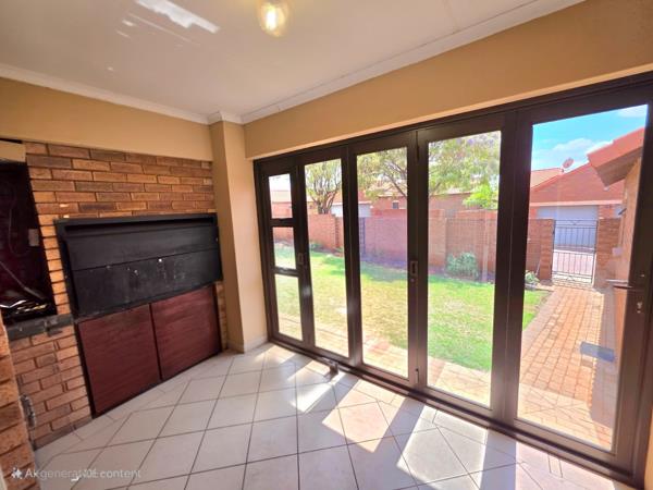 We are excited to present a beautifully designed and spacious townhouse featuring a huge garden, ideal for children to play and explore. They will have absolute ball playing in this garden. Besides the garden, this property has it all, including an enclosed patio with an indoor braai, perfect for entertaining during the cooler months.