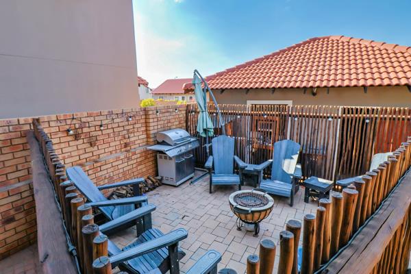 - Covered patio with a built-in braai, leading to an outdoor entertainment zone overlooking a beautifully landscaped garden equipped with an irrigation system