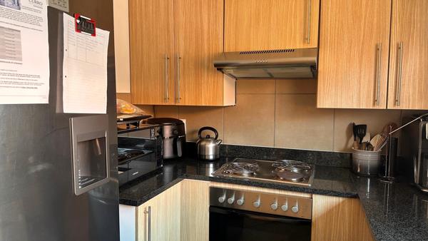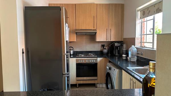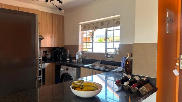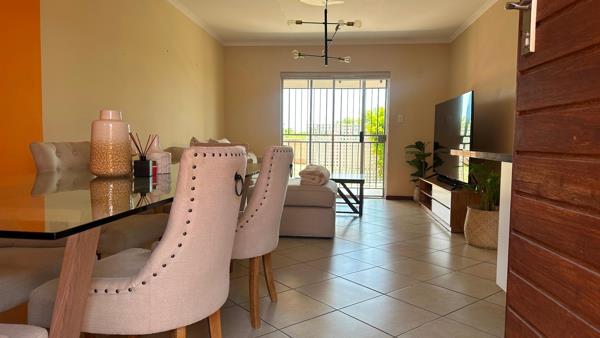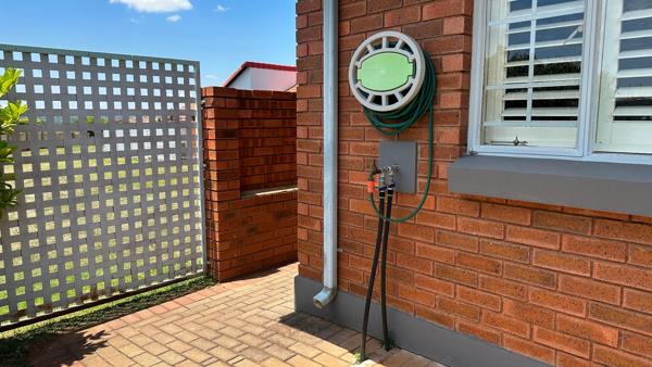 Convenience continues outside, with two parking bays right in front of the unit and a double garage positioned alongside for easy access. The home is fitted with a solar geyser, helping to reduce electricity costs.