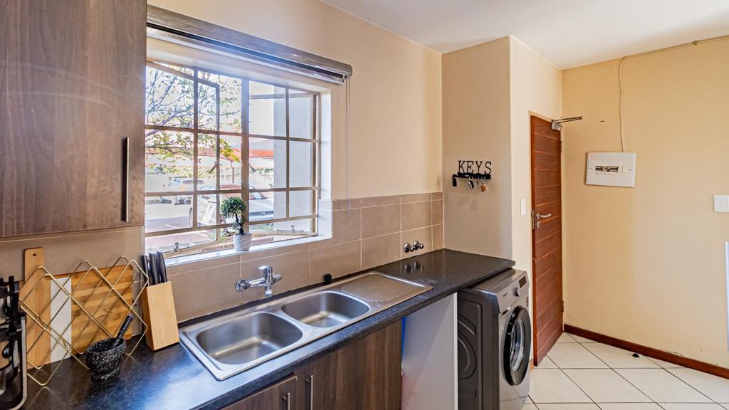 Step outside to savor the joys of shared community spaces, including a peaceful common area and a dedicated playground and braai area for outdoor leisure. The apartment comes with covered parking for two vehicles, adding to your convenience. A north-facing orientation ensures an abundance of natural light throughout the day, enhancing your living experience.