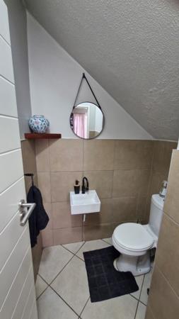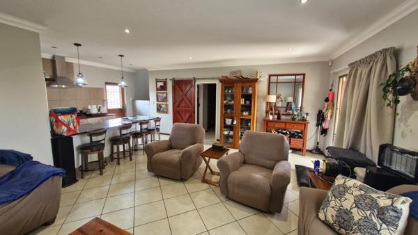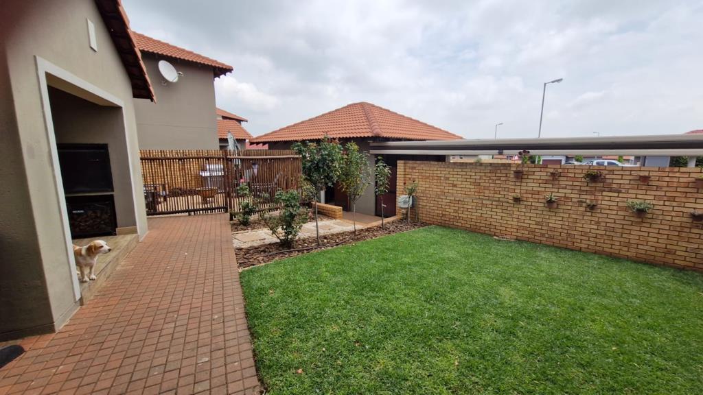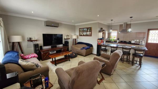 The residence comprises three comfortable bedrooms and 2.5 bathrooms, including a private ensuite and a guest toilet. A dedicated study provides an ideal space for work or hobbies. Outside, a private patio with a built-in braai is perfect for entertaining, complemented by a well-kept garden with an irrigation system.