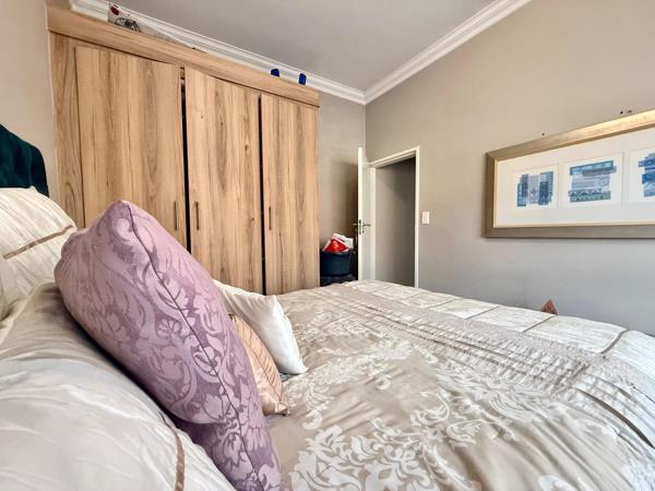 The bright and airy living and dining area opens onto a covered patio complete with a built-in braai, creating the perfect space for hosting or unwinding while children play safely in the spacious, enclosed garden.