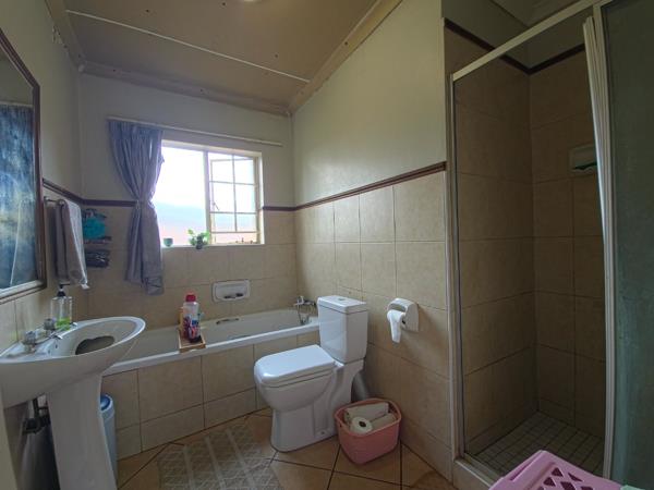 Down the passage, the Property offers 3 spacious bedrooms with built-in wardrobes, tiled floors and 2 bathrooms, of which one of the bathrooms is a full main ensuite offering a shower, basin, toilet and a bathtub.