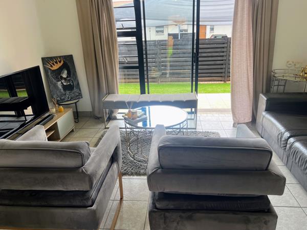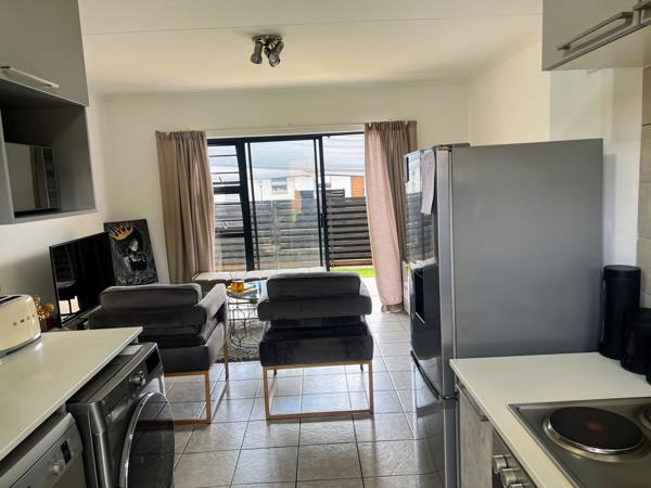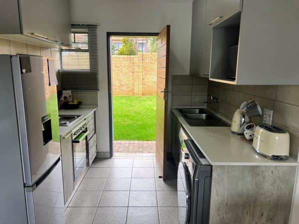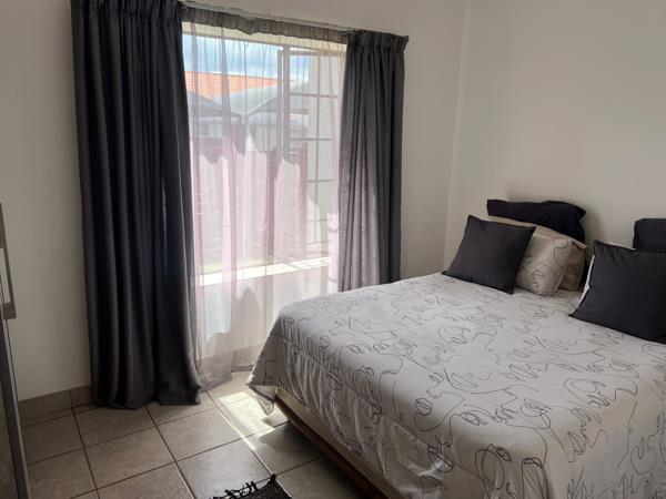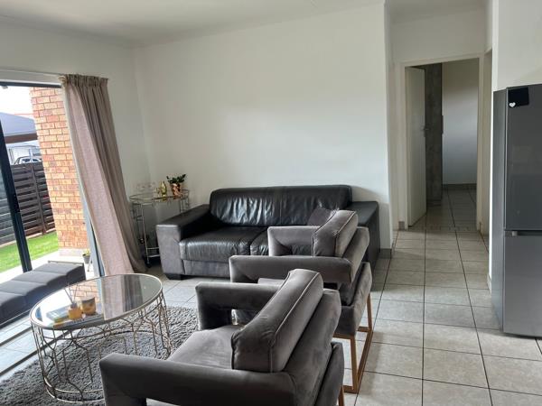 The property features two bathrooms and a kitchen that flows into the dining room. Located within an estate, the complex includes a dedicated children''s play area. Additionally, the apartment is conveniently situated near a shopping center, a hospital, and the freeway leading to Pretoria.