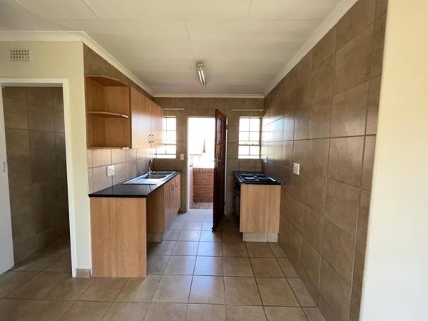 The home features 2 well-sized bedrooms with built-in cupboards, a full bathroom, and an open-plan lounge and kitchen designed for easy living and entertaining. The kitchen is functional with ample cupboard space.