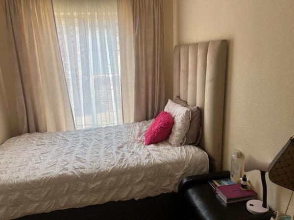 This apartment is situated within a secure boom-gate complex and offers convenient access to nearby shops and schools. It also includes parking space for two cars.
