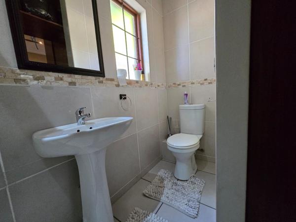 This well-designed property offers 3 bedrooms, including 2 en-suite rooms for extra convenience. A shared bathroom is located in the passage for guests and the third bedroom. The open living with a spacious lounge, kitchen, and scullery, all flowing out to a patio with built-in braai great for entertaining. Out back, you''ll find a single garage with an extra bedroom and bathroom, ideal for guests or a home office. A double carport completes the picture, offering plenty of parking. This home is move-in ready with everything you need one smart space.