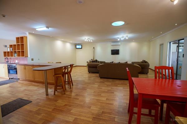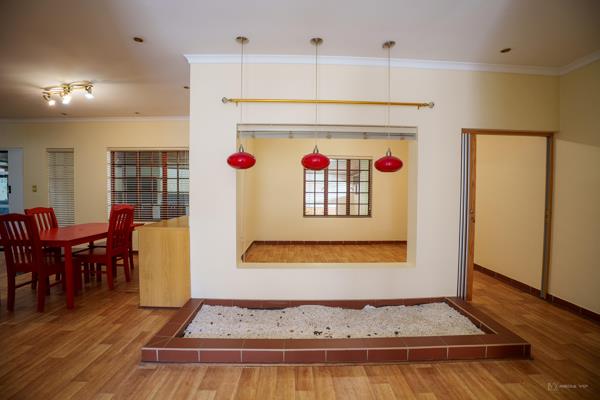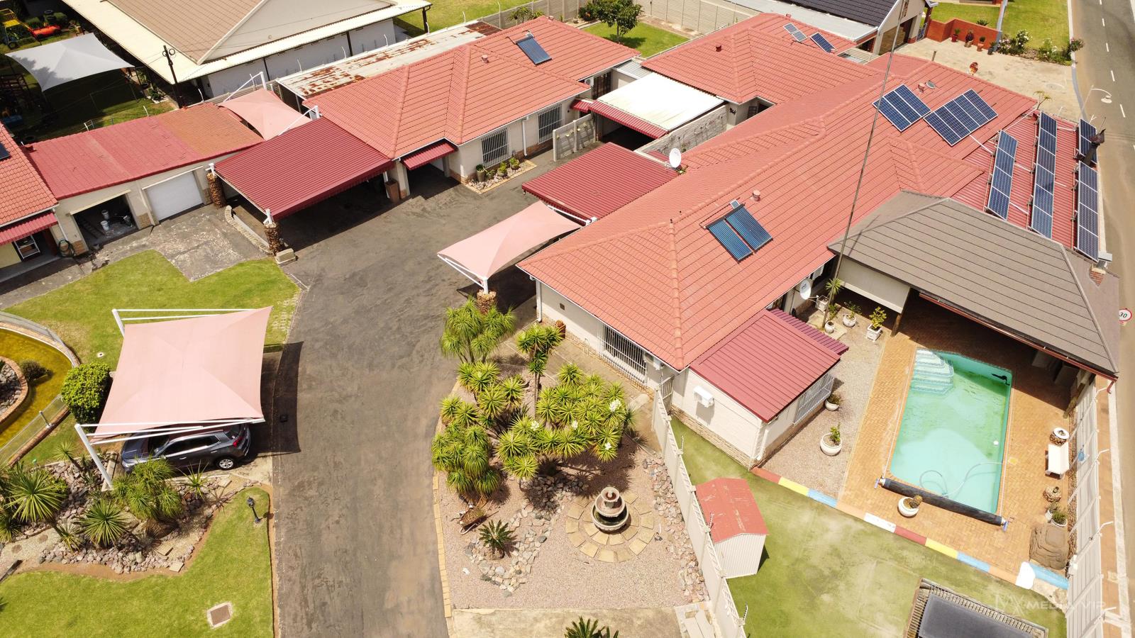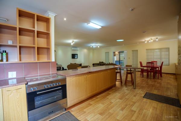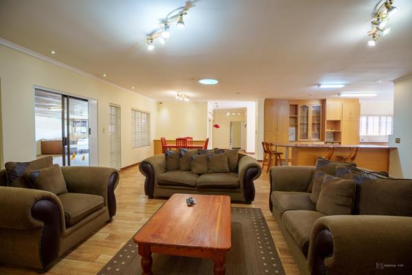 This beautifully designed main residence offers four generously sized bedrooms, all fitted with built-in cupboards and air conditioning for year-round comfort. The impressive main suite boasts a private dressing room, walk-in closet, and a luxurious full en-suite bathroom, while two additional bedrooms also enjoy en-suite bathrooms, with a separate full bathroom servicing the third guest bedroom. A private study with a guest toilet complements the expansive open-plan living and dining areas, alongside a loungeTV room and a spacious chef-inspired kitchen with abundant storage and a separate scullery. The TV room flows seamlessly into a superb entertainment area with a built-in braai and second guest toilet, leading to a large indoor entertainment space that opens onto a covered outdoor area with a pizza oven and a sparkling blue swimming poolperfect for hosting and relaxed family living.
