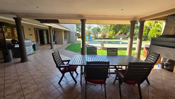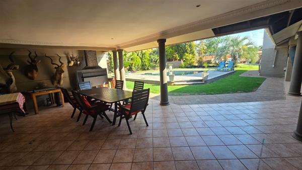 Step outside to a dedicated entertainment area with a built-in braai, ideal for year-round gatherings. Additional features include three garages, two carports, and staff accommodation.