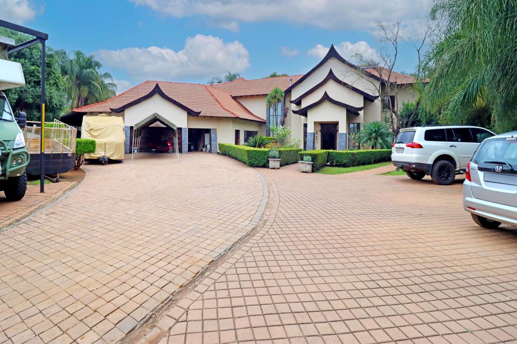 Added benefits include a 50 KVA generator for uninterrupted power, a 24kw solar system with battery and inverters for energy efficiency, WIFI connectivity, a solar-heated pool and 7 solar water geysers, robust security within a mini-complex, parking for up to 7 vehicles under cover, generous driveway parking, and 3 secure lock-up garages.