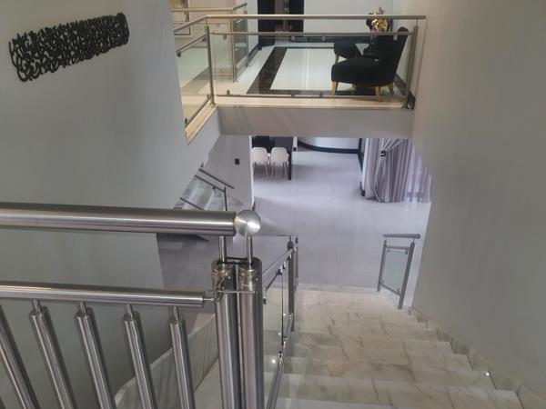 The modern kitchen is a culinary haven featuring top-tier appliances, a mini chef''s kitchen with gas hob, and an extra large laundry cum scullery area. There are two pantry cabinets, and a breakfast island.
