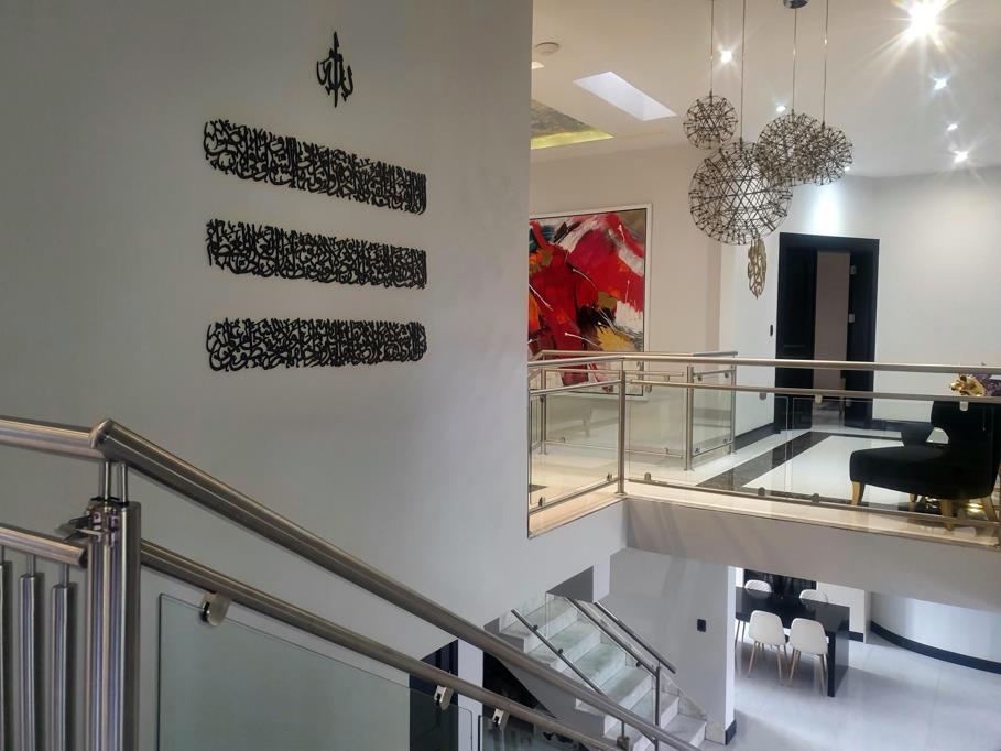 The home boasts 3 spacious bedrooms, all ensuite, offering serene retreats with sleek finishes and ample storage. The primary suite is majestic in size with a show-room type dressing room, perfect for preparing for the day ahead. The ensuite bathroom is a true oasis, featuring twin vanities, shower, freestanding bathtub, and toilet. There is a gorgeous lobby area on this level of the home, with 2 marble-tiled staircases leading to the living areas and kitchen on the lower level.