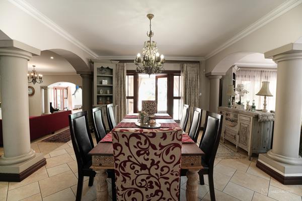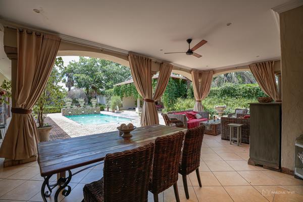 The grounds are parklike with automated irrigation on a borehole, established trees, paved walkways, ponds, three patios around the pool, and a sunken boma ideal for family living and entertainment.