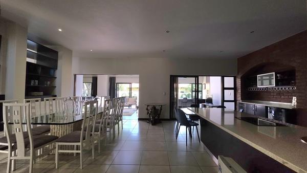 The super-sized formal lounge which boasts access to the idyllic back garden also has stacking doors to the study and tv room, making large-scale entertaining at home, a breeze. The tv room has access to the covered indoor patio with built-in-counter for effortless entertaining, and leads to a covered verandah with built-in-braai, where the family can host Summer braais around the pool in the relaxing front garden. A conveniently located guest toilet and direct access to the neatly tiled, automated double garage.