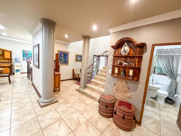 Step inside to an expansive entrance hall that sets the tone for refined living. The home offers one distinct lounge and a dedicated family TV room, providing ample space for both grand entertaining and intimate family moments. Culinary enthusiasts will appreciate the convenience of well-appointed kitchen, seamlessly flowing into the elegant dining room. An open-plan design enhances the sense of space, while a built-in braai and a dedicated braai room promise effortless hosting.