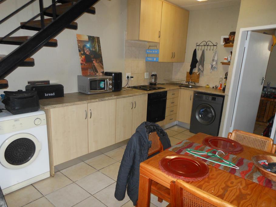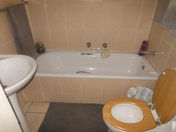Two Comfortable Bedrooms, the spacious main bedroom is situated upstairs with ample built-in cupboards, and an en-suite bathroom. The additional bedroom is generously sized and perfect for children, guests, or a home office. With ample closet space and large window and an en-suite bathroom, fitted with a basin, bath and toilet.