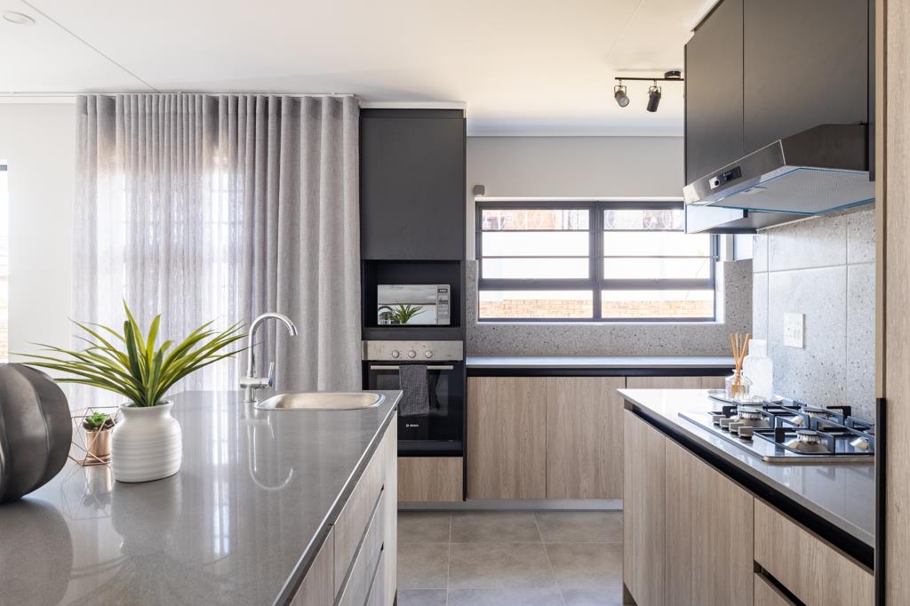 This modern 4-bedroom, 3-bathroom duplex is perfect for growing families or those needing extra room to live and work. It features an open-plan kitchen and lounge area, flowing out to a private garden and generous yard ideal for pets, kids, and weekend braais. One bedroom and bathroom are conveniently located downstairs, perfect for guests or a home office. The home includes a double carport for secure parking.
