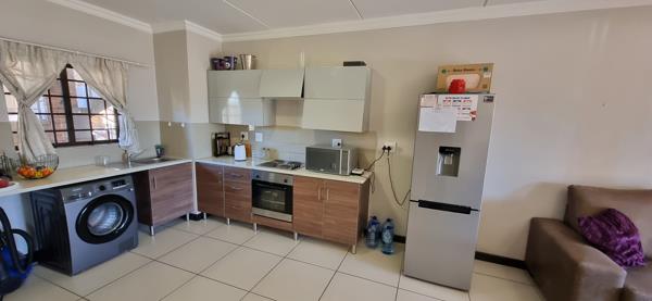 - A generous open-plan kitchen equipped with space for a double-door fridge, two undercover appliances, and ample cupboard storage.