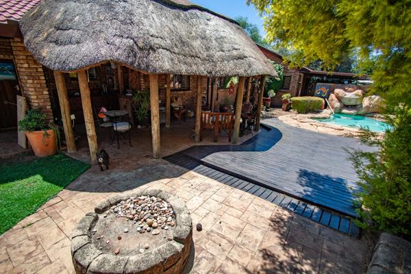 Step outside to enjoy the well-maintained garden, a boma area for cozy evenings by the fire, and a stunning rock pool for summer relaxation. The home is finished with a combination of stylish laminate flooring and tiling throughout.