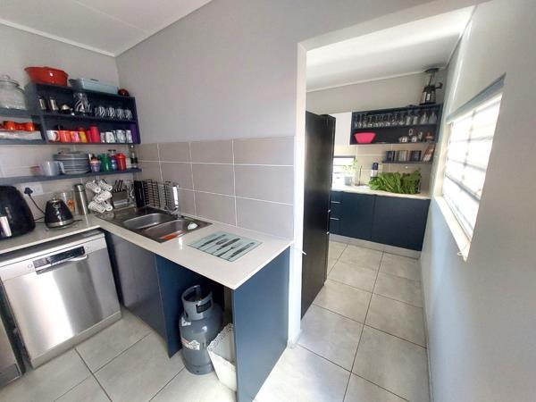 Modern Kitchen: Fully fitted with ample cupboard space, gas hob, eye-level oven, and room for a double-door fridge. Separate scullery and laundry with access to the backyard.