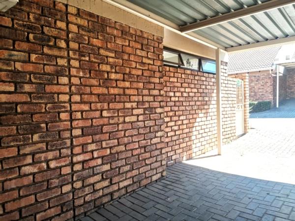 Indoor braai room opening to covered patio with glass sliding doors.Private, pet-friendly garden in the front and back.Single garage + covered carport.Secure, access-controlled complex, paved through-out the complex.Close to schools, shopping centres and major routes.Don''t miss out on this fantastic opportunity. Call today to book your viewing!