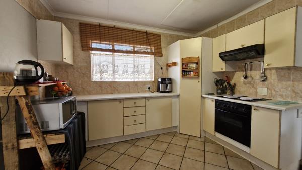 This well-positioned home offers an open-plan lounge and dining area, leading to a spacious kitchen with a separate scullery. The property features three well-sized bedrooms, all with built-in cupboards, while the main bedroom boasts an en-suite bathroom and dressing room. A second bathroom with a bath serves the remaining bedrooms. In addition, two extra cupboards in the passage provide even more storage. Bedrooms are carpeted, while the rest of the home is neatly tiled for easy maintenance.