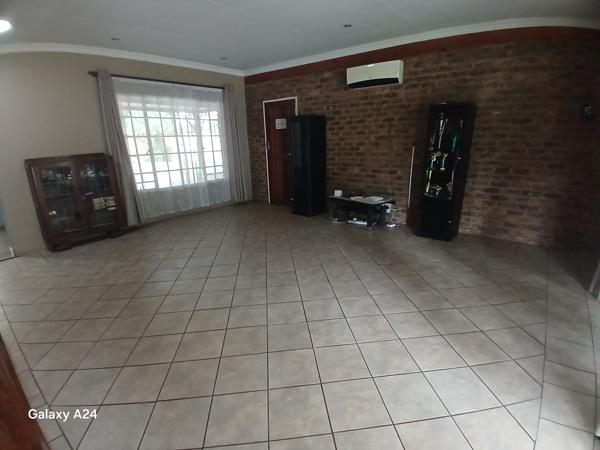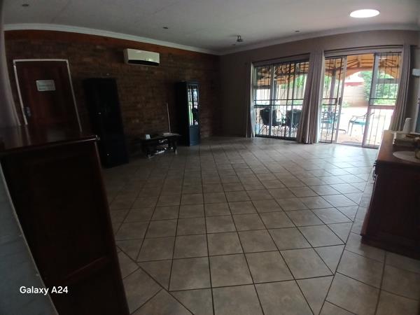 Spacious living room leading to an undercover Lapa entertainment area with a built-in braai