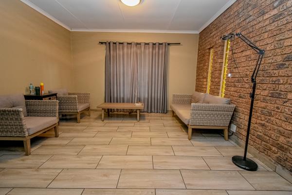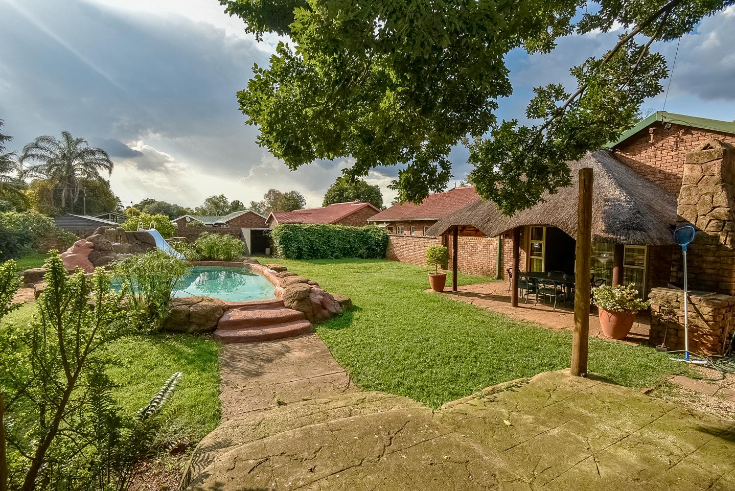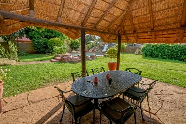 A sparkling pool with a slide, perfectly positioned in clear view of the lapa and braai area ideal for entertaining while keeping an eye on the kids and making unforgettable memories.