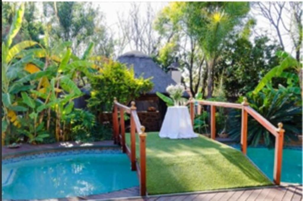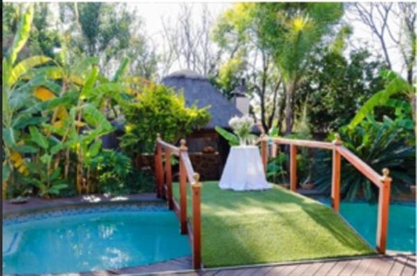 Outdoor features include a swimming pool with decking, a boma, and a lapa with builtin braai, ideal for entertaining. The property also benefits from a 10 kW water tank and ample parking with 12 bays, including a garage.