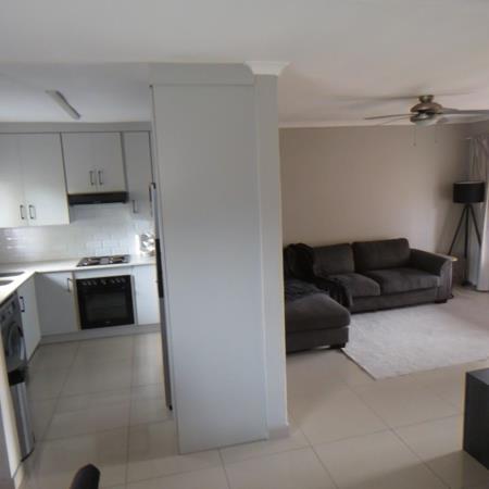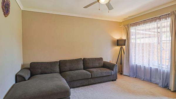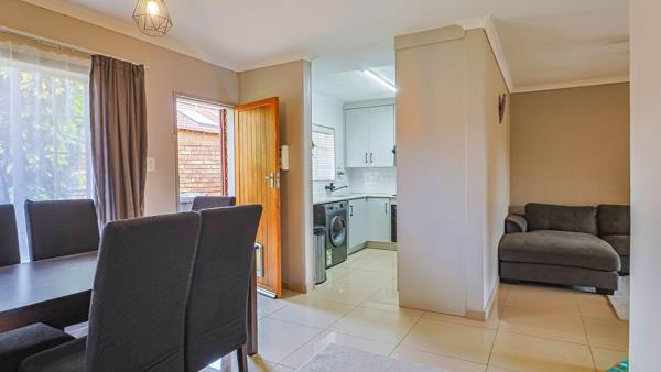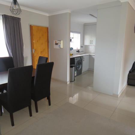 THE LOVELY TOWNHOUSE CONSISTS OF 2 SPACIOUS BEDROOMS WITH LAMINATE FLOORING, 2 MODERN BATHROOMS, MODERN KITCHEN, SEPARATE LOUNGE AND DINING ROOM. BUILD IN BRAAI AND COVEREND OUTSIDE AREA. DOUBLE GARAGE WITH DOUBLE CARPORT. CORNER UNIT WITH A BIG BEAUTIFUL GARDEN.