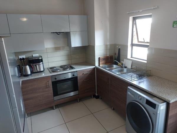 This inviting home features an open-plan kitchen and living area, designed for easy, modern living. The kitchen is well-equipped with ample cupboard space and contemporary finishes, making it both functional and stylish. The apartment boasts one well-sized bedroom complemented by a full en-suite bathroom, providing privacy and comfort.