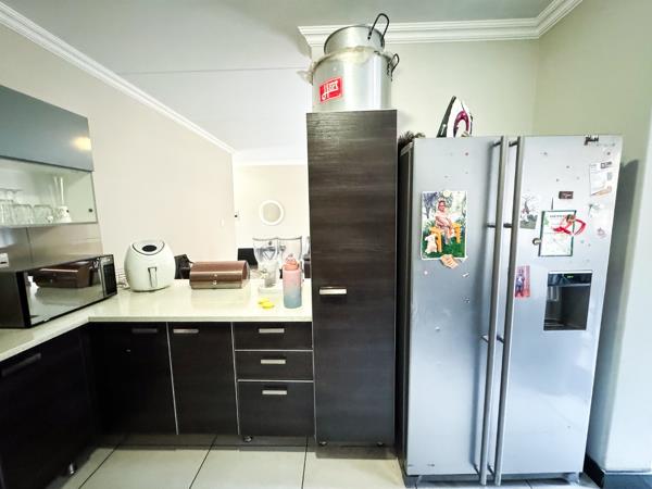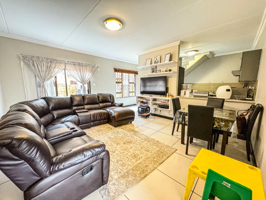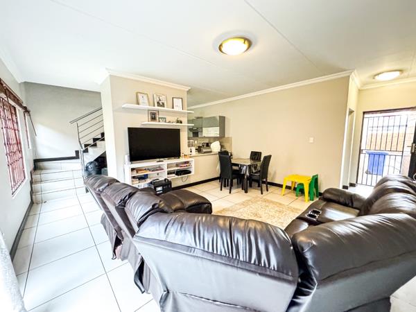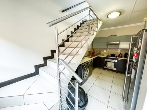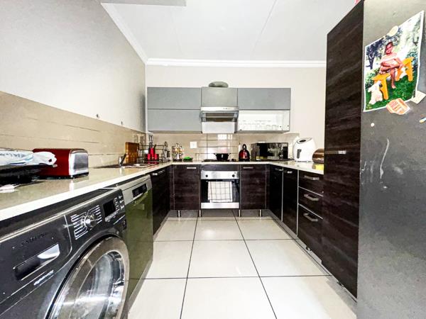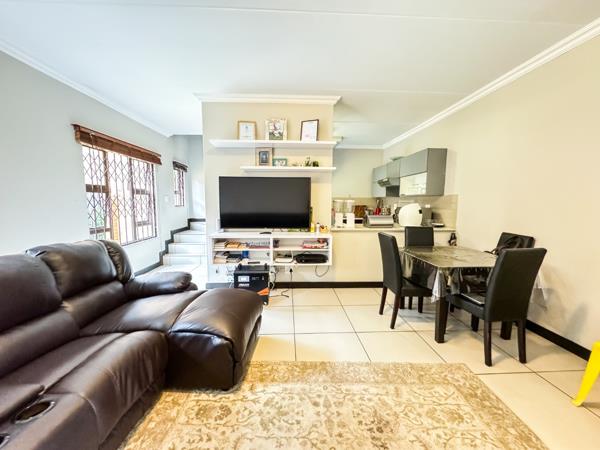 Located in Amberfield is this lovely modern 3 bedroom, 2 bathroom home with a double garage in a safe and secure complex. As you enter into a spacious lounge and dining area that is beautifully tiled which is complemented by ample natural sunlight, the lounge opens onto a patio area and garden. The modern kitchen has ample cupboard space, room for 2 plumbed under counter appliances. There is space for a large fridge, stunning quarts counter tops and a double sink and also has an open concept.