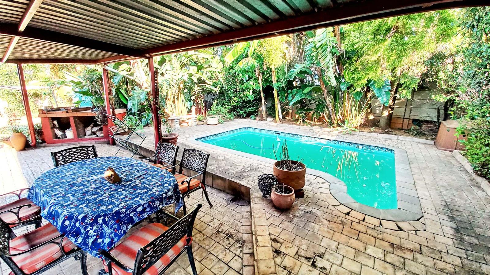 The very spacious patio, roofed right up to the pool, features a built-in braai and overlooks a well-established, tropical-style garden perfect for both relaxation and entertaining.