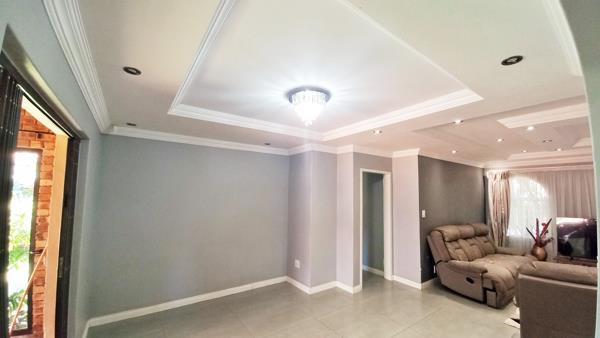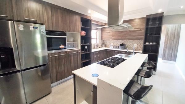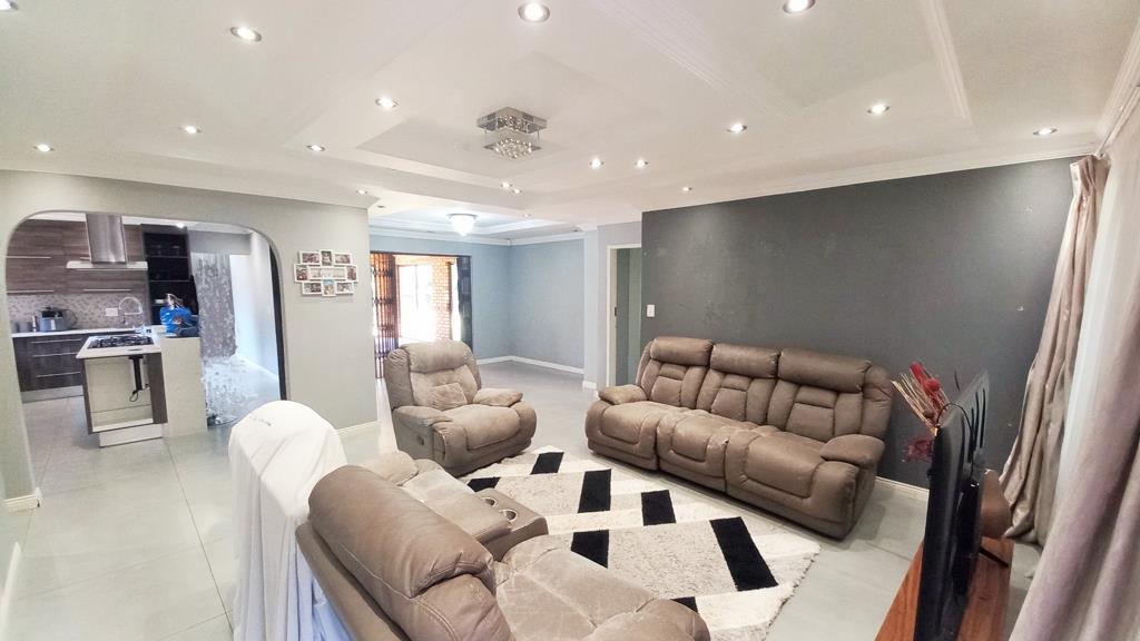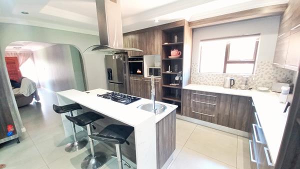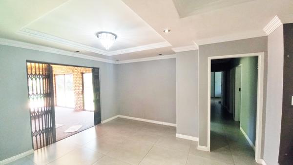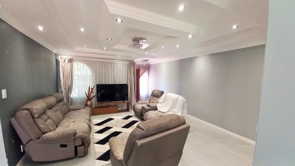 Five comfortable bedrooms provide ample accommodation, complemented by 2.5 bathrooms, including an en-suite, designed for comfort and practicality. The property extends its appeal outdoors with a well-maintained garden, a refreshing swimming pool, and a lapa with a built-in braai, ideal for entertaining guests.