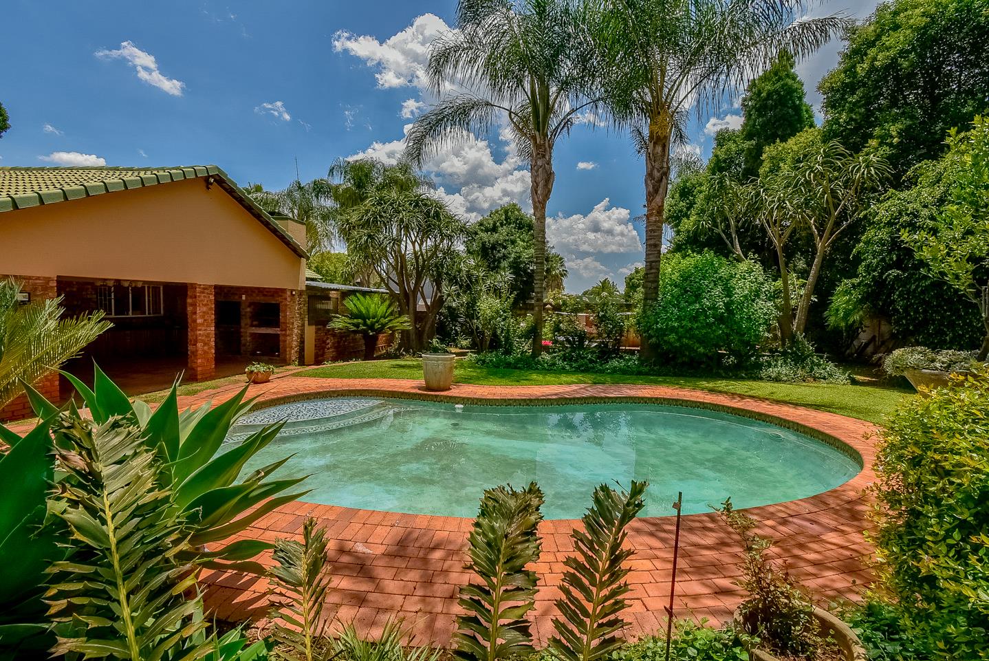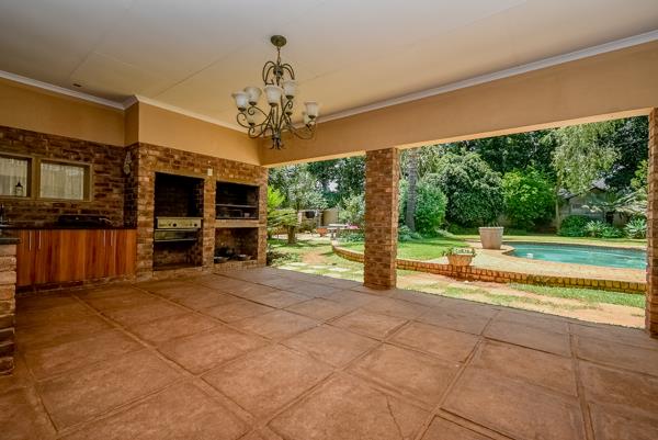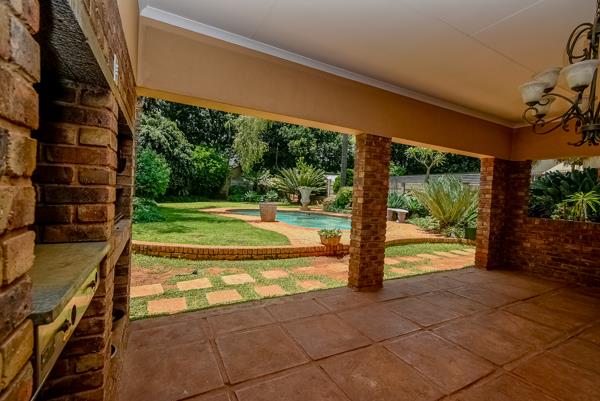 Step into the welcoming lounge, where warmth and comfort greet you. To the left, a private bedroom with its own en-suite provides a perfect space for guests or extended family. On the right, the dining room is the heart of the home, seamlessly flowing into a bright and airy kitchen. From here, step outside onto a covered patio featuring a built-in braai overlooking a glistening pool & an established garden the perfect setting for weekend get-togethers and relaxing afternoons.