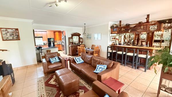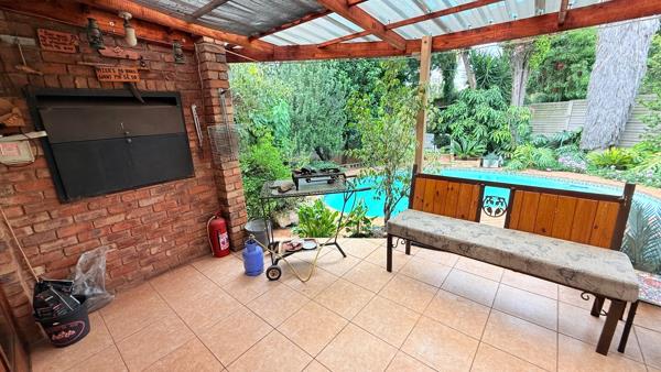 Large, neat-as-a-pin-kitchen with ample cupboards, walk-in pantry, gas stove, breakfast nook and generous size scullerylaundry. The kitchen is open plan to a large living space that seamlessly flows to the stunning outside patio area with built-in braai overlooking the private manicured garden and swimming pool for relaxed summer days.