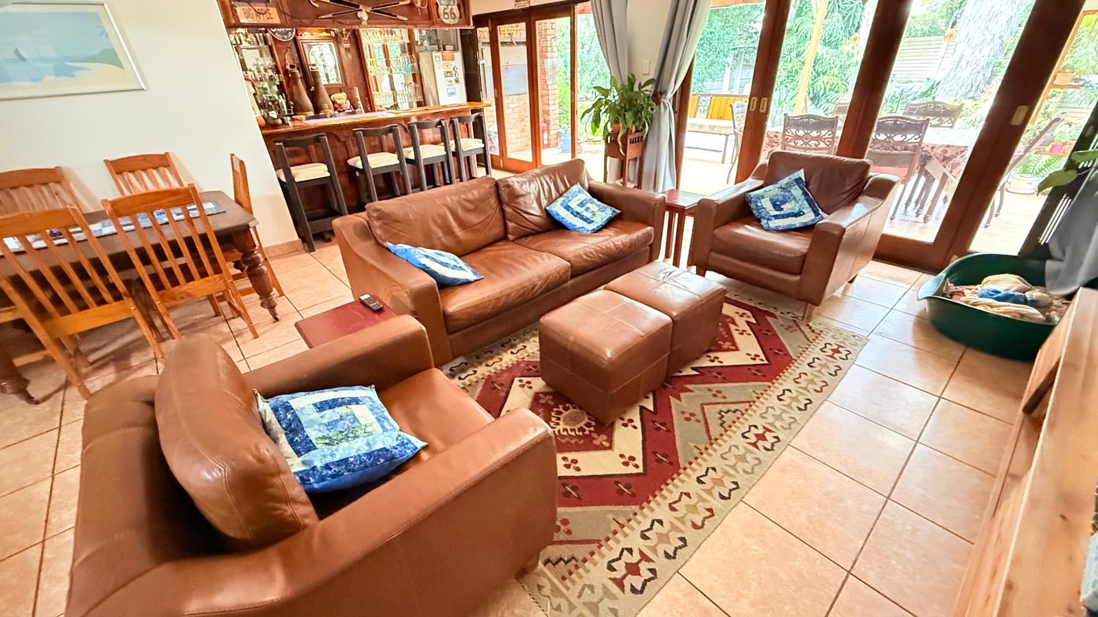Upon entering through the most beautiful and unique front door made of wood and bevelled glass, you are greeted with a large living area space.