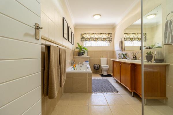 -The main bedroom offers plenty of cupboards, an aircon, loads of space and a modern, full en-suite bathroom double basin