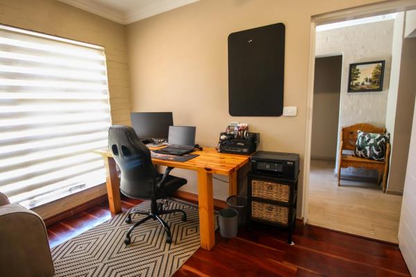 In summer the closed lapa is the perfect entertainment area, and comes with a built-in- dishwasher and braai. The sliding windows can open up completely for an extra breeze. The lapa doors opens to the view of an inviting sparkling blue pool.