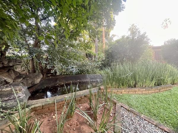 The standout feature is the expansive outdoor space, complete with a beautifully maintained garden, tranquil water feature, and a large thatched lapaperfect for hosting family and friends.