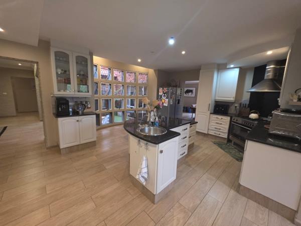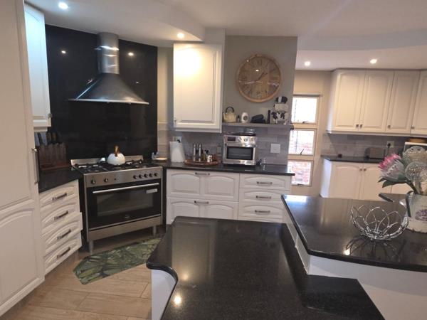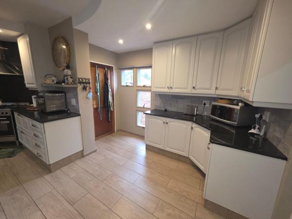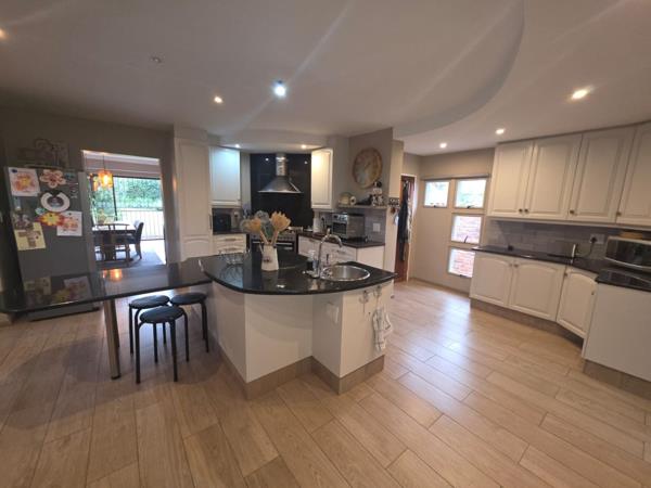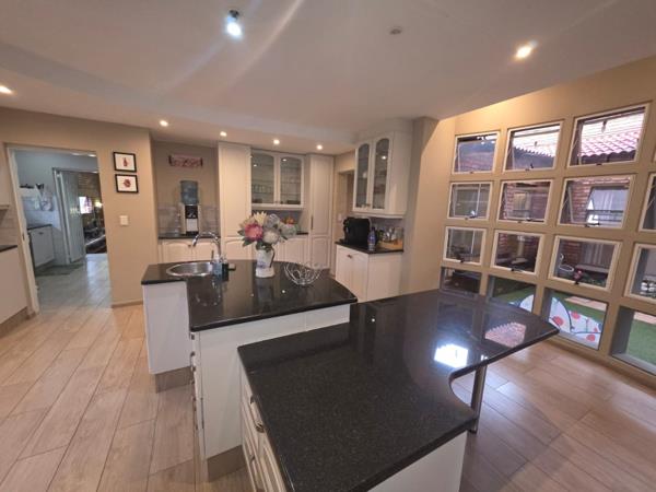 The home is powered by an advanced solar system, ensuring efficiency and peace of mind during load-shedding, while added features such as a double garage with direct access, extra covered parking, and a practical workspace enhance everyday convenience.