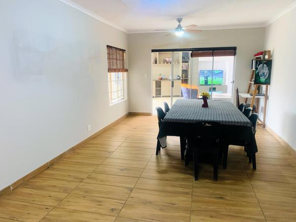 This stunning 4 bedroom with 2 en-suites home is the epitome of family living. As you step inside you are greeted by an open plan living area that seamlessly connects to the kitchen and lounge, this space leads to an entertainment area, complete with a built-in braai ,extra lounge and a private pool. The kitchen offers ample cupboard space and a convenient scullery for laundry and dishwashing.