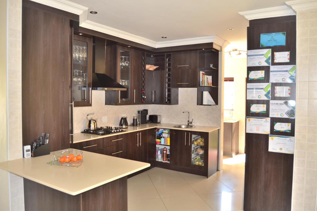-Open plan kitchen with granite counter tops, GAS HOB, and space for a double fridge. Separate scullery for the rest of your appliances