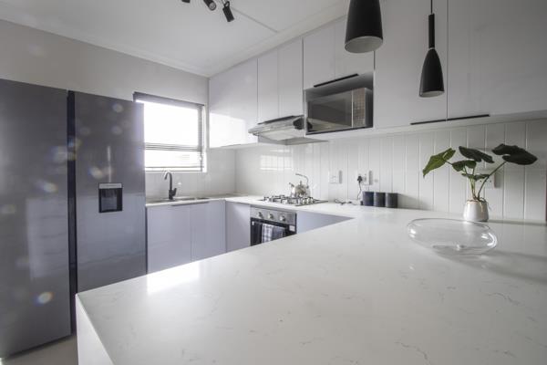 The architect-designed living area leads out to the patio with solar light and private garden. As you enter the front door, you have a small entrance hall, with the laundry and garage with inter-leading door. The open plan loungedining roomkitchenstudy area is ideal for relaxation, study and entertainment. A chef''s kitchen featuring top-tier appliances and bespoke cabinetry. The kitchen is fitted with a 4 burner gas hob, has space for a double door fridge and microwave.