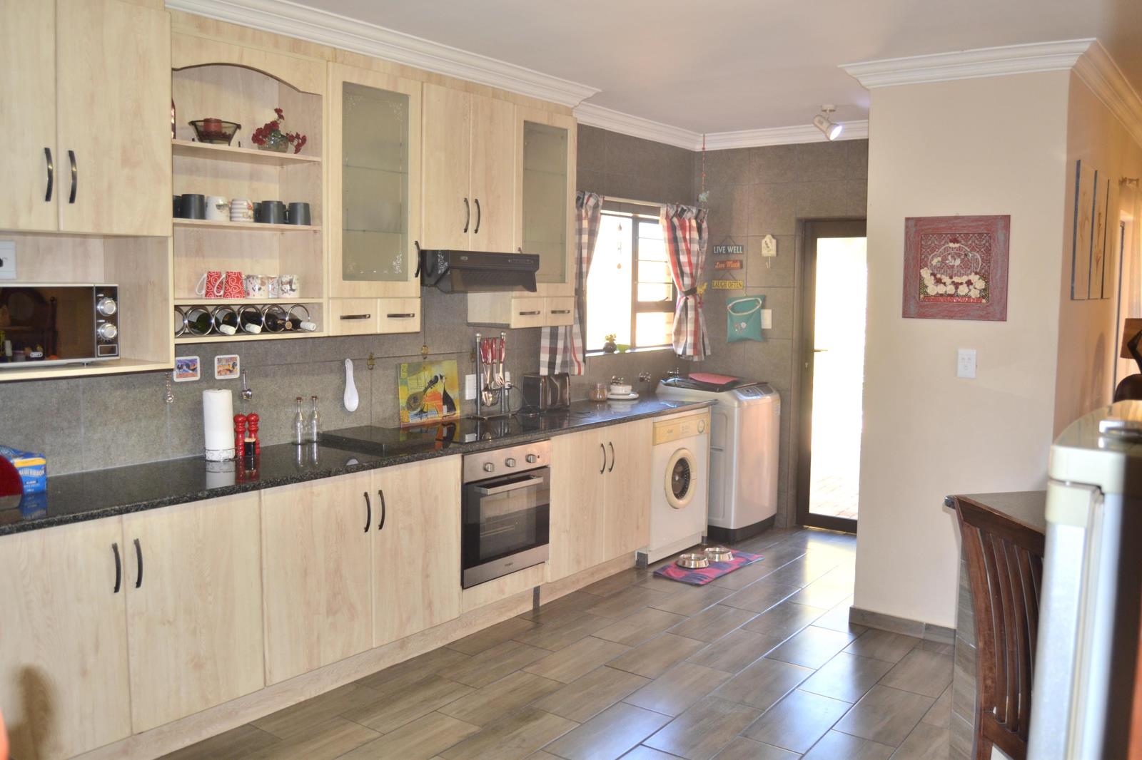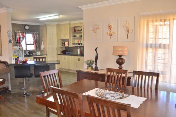 3 Bedrooms, 2 Full Bathrooms, Open plan Kitchen with granite counter tops and a separate Scullery, Living Room, Dining area, Indoor entertainment area study area another lounge with a build in braai you can convert it to a fireplace Sliding door leading to an outdoor entertainment area with a build in braai, Double Automated Garage, Landscaped wrap around garden. Aluminium windows