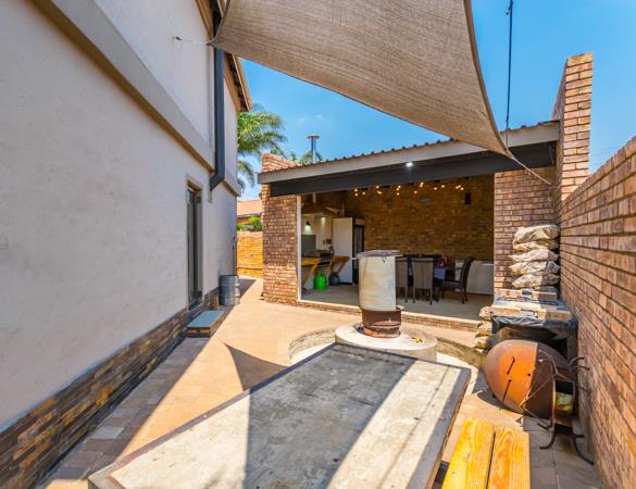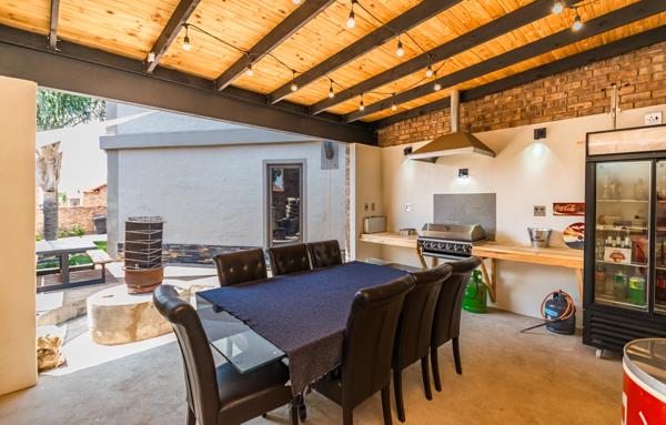 Step outside to find an entertainers paradise, complete with a gas braai and a well-positioned boma, making it an ideal space for hosting gatherings. Adjacent to the entertainment area, theres a storeroom already equipped with an inverter system and backup batteries. An additional Wendy house provides even more storage options.