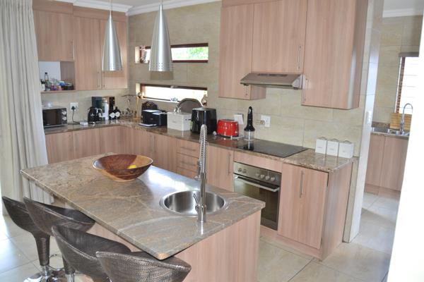 3 Bedrooms, 2 Full Bathrooms, Guest WC, Open plan kitchen with granite counter tops and separate scullery, Dining area, Living area, Covered patio with a build in braai, Double automated garage