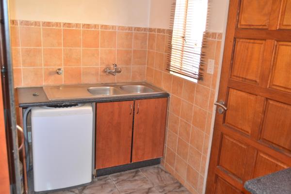 Sunken Enclosed Kitchen with melamine counter tops. Separate scullery