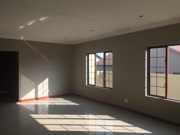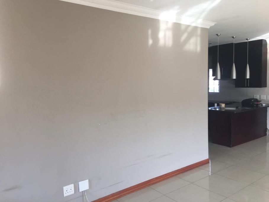 Spacious open plan loungedining room area opening up onto a patio with built in braai.