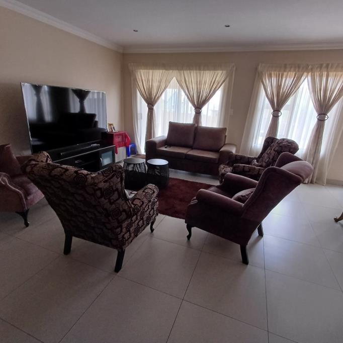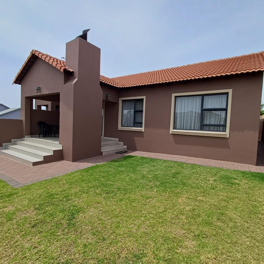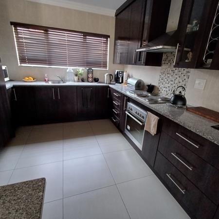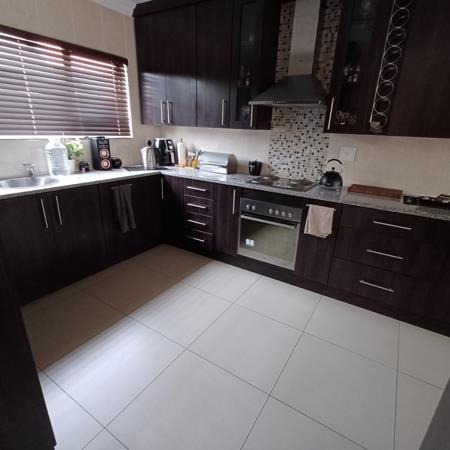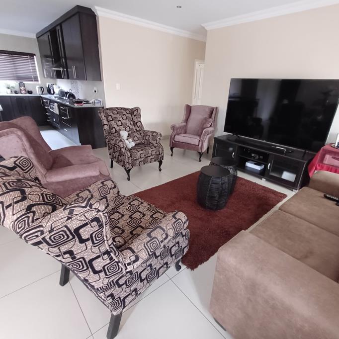 As you enter you are welcomed by a spacious open-plan living area, offering enough space for both lounge and dining room. The kitchen is spacious with plenty cupboard space, gas stove and a separate scullery with space for 3 machines and a double fridgefreezer. The 3 bedrooms are all decent sized and comes with ample, built-in cupboard space. The main bedroom comes with a walk-through cupboard and en-suite bathroom bath, shower, toilet, basin. The other 2 bedrooms share a 2nd bathroom bath, toilet, shower, basin.